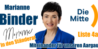 Jul142023Kanton AargauSchweiz / Suisse / Svizzera / SvizraBinder Marianne – 5400 Baden Miteinander für unseren Aargau. Ich kandidiere für den National- & Ständerat, bitte 2x auf Ihre Liste Die Mitte Liste 4a