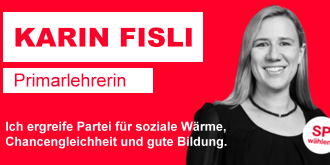 Jul262023Kanton Bern / BerneSchweiz / Suisse / Svizzera / SvizraFisli Karin – 3045 Meikirch Ich ergreife Partei für soziale Wärme, Chancengleichheit und gute Bildung. Primarlehrerin und Grössrätin Kanton Bern SP Liste 19