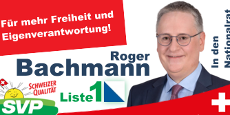 Jul142023Kanton ZürichSchweiz / Suisse / Svizzera / SvizraBachmann Roger – 8953 Dietikon Für mehr Freiheit und Eigenverantwortung! Ich kandidiere für den Nationalrat, bitte 2x auf Ihre Liste SVP Liste 1